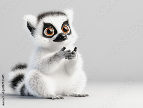 lemur, nocturnal, cute, animal, three-dimensional, illustration, character, wildlife, playful, cartoon, design, full body, exotic, nature, primate, adorable, creative, colourful, expressive, fun, friendly, art, fantasy, vibrant, feature, realistic, joyful, enchanting, whimsical, detail, charme, habitat, dynamic, tropical, curious, engaging, environment, visual, charming, unique