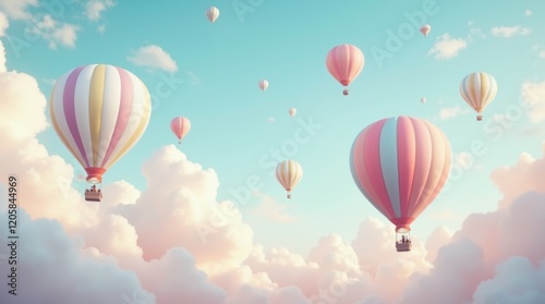 Whimsical Hot Air Balloons in a Pastel Sky