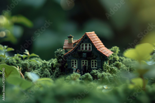 miniature, house, garden, whimsical, fairy, fantasy, nature, bokeh, small, enchanting, red roof, greenery, magical, charming, model house, toy, creative, playful, lush, vignette, storytelling, dreamy, sharpened, blur