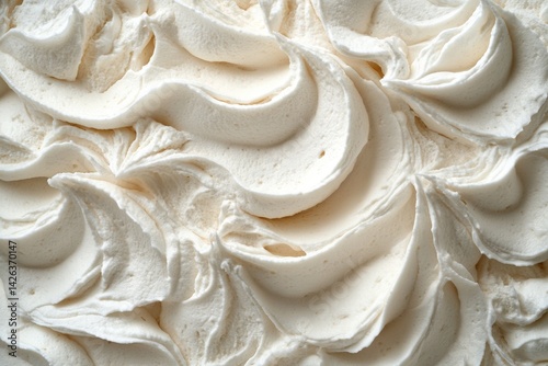 Whipped cream texture with decorative swirls in a close-up shot highlighting its smoothness and richness