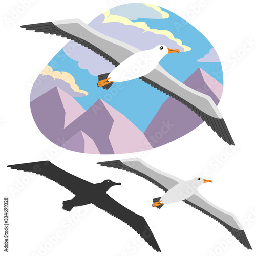 albatross, seagull, gull, seabird, bird, wild, silhouette, cloud, fly, marin, freedom, single, ocean, logotype, element, summer, tropics, black, flight, travel, clip art, wing, 1, image, group, beautiful, cartoon, style, isolated, sea, white, wildlife, sky, set, nature, collection, background, beach, animal, signs, illustration, vector, symbol, icon, mountain, blue