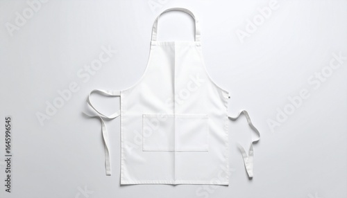 apron, white, fabric, textile, garment, clothing, neck, strap, attaching, waist, pocket, divided, stitching, seam, plain, blank, clean, idled, kitchen, cooking, chef, baker, protective, apparel, clothes, cotton, polyester, workwear, uniform, culinary, eatery, domestic, home, cover, shield, utensil, preparation, tidy, minimal, flat, isolated