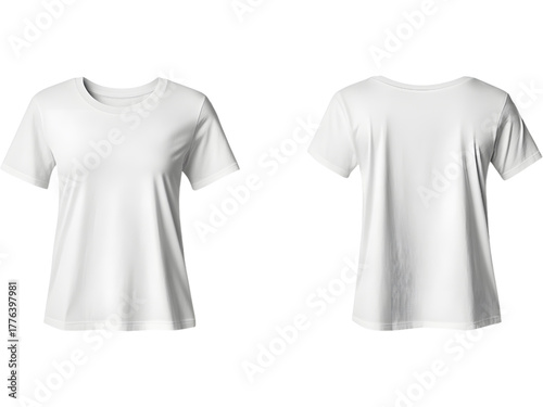 White casual t-shirts front and back view isolated on transparent background, representing clean fashion and minimalist design.
