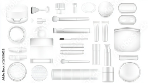 cosmetic, container, brush, make-up, beauty, product, cardboard box, template, design, white, blank, empty, jar, tube, bottle, powder, cream, foundation, mascara, eyeliner, applicator, tool, kit, set, collection, studio, isolated, background, overhead, topview, object, item, accessory, skincare, cosmetic, elegance, clean, minimalist, simple
