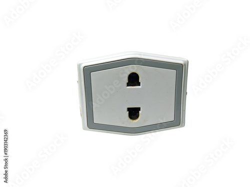 White electrical socket adapter front view isolated on transparent background PNG cut out