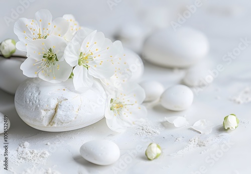 White Flowers and Stones Spa Concept Background