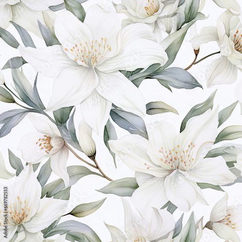 white flowers watercolor seamless patterns, watercolor picture of flowers, floral