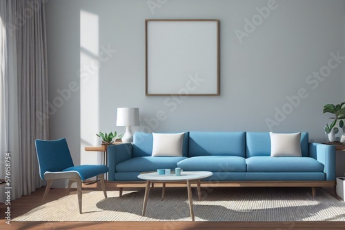 white, blue, accent, blank, wall, interior, room, sofa, furniture, home, living, design, table, chair, house, couch, lamp, apartment, floor, armchair, three-dimensional, contemporary, architecture, decor, luxury, indoor, comfortable, living room, wood