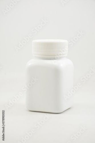 white, plastic, bottle, container, screw, cap, use, put, medicine, tablet, pill, intake, seal, open, close, tight, small, object, thing, item, bare, nameless, blank, capsule
