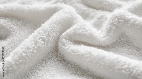 White Plush Towel Texture, Close-Up Shot, Top View. AI generated illustration
