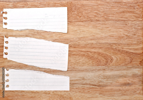 white rip paper is on wooden background