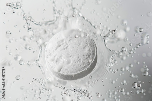 White round effervescent soluble pill falling in the water