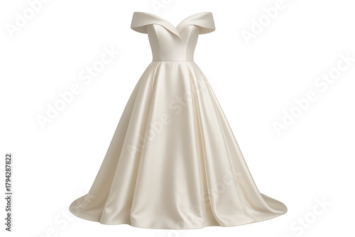 wedding, dress, gown, bridal, satin, off, shoulder, formal, wear, fashion, elegance, luxury, bride, cream, cut-out, studio, shot, apparel, clothing, style, textile, fabric, romance, marriage, celebration, event, beautiful, design, sophisticated, glamourous, classic, traditional, modern, attire, boutique, tailoring, ceremony, occasion, dressmaking, sewing, dream, fantasy, woman, female, elegant, transparent, background, isolated, white