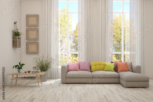 interior, design, white, three-dimensional, architecture, sofa, wood, render, room, window, green, living, comfort, cosy, abstract, concept, background, bright, decoration, flower, frame, furniture, home, house, idea, illustration, minimal, modern, object, parquet, relax, scandinavian, style