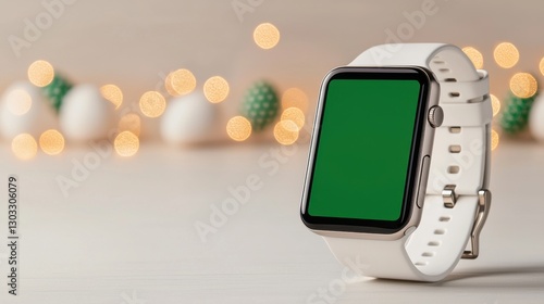 White Smartwatch with Green Screen and Festive Lights