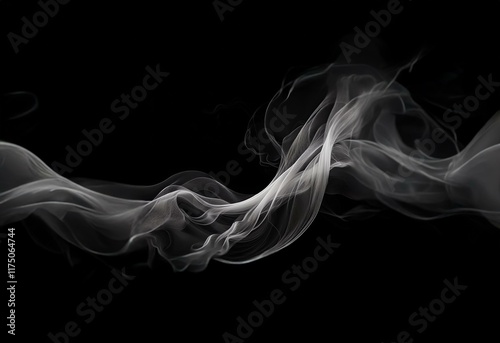 White smoke abstractly curves and flows on a black background.
