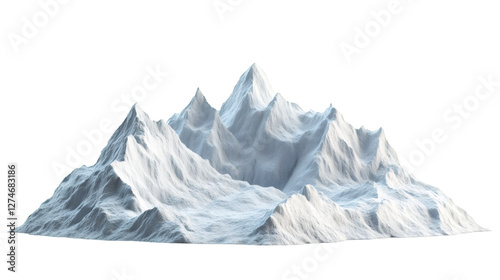 mountain, snow, range, winter, nature, landscape, peak, cold, ice, glacé, altitude, summit, white, scenery, environment, climate, weather, season, transparent, background, sky, high, rock, geology, geography, three-dimensional, render, digital, art, illustration, design, element, no, people, isolated