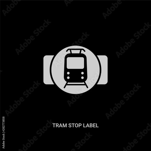 white tram stop label vector icon on black background. modern flat tram stop label from transport concept vector sign symbol can be use for web, mobile and logo.