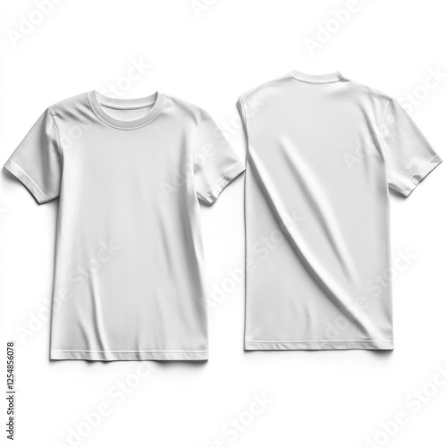 White T-shirt mockup, front and back view, isolated on white background, for apparel design