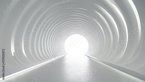 White Tunnel of Light: A futuristic, minimalist tunnel with a bright light at the end, symbolizing hope, progress, or a journey towards the unknown.