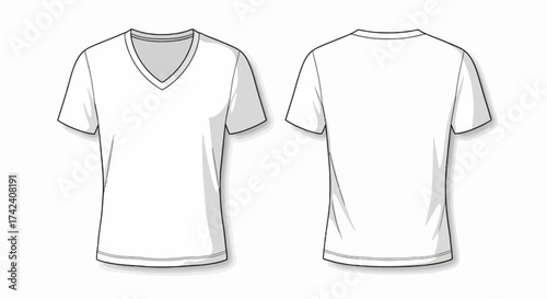 White Vneck Tshirt mockup front back views isolated on white with subtle shadows