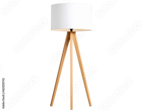 White Wooden Modern Standing Lamp – Sleek Minimalist Design Isolated on White or Tran