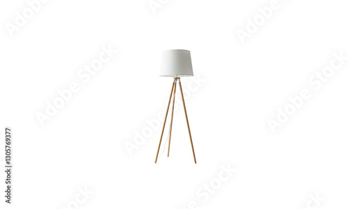 White Wooden Modern Standing Lamp with Fabric Shade and Transparent Background