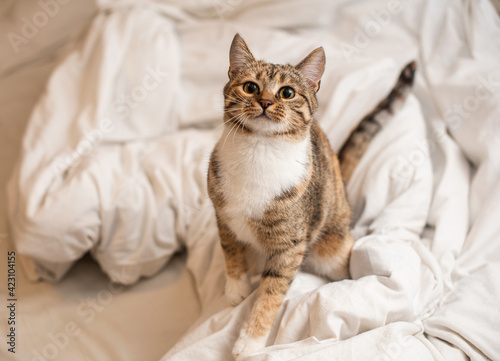 expression, indoor, muzzle, joyful, clean, face, sitting, tongue, washing, hygiene, looking, playing, closeup, bed, short hair, love, small, cosy, fluffy, funny, furry, rest, blanket, white, comfort, relax, paw, comfortable, warm, tabby, fur, happy, lovable, soft, kitten, mammal, felino, home, cat, cat, background, portrait, young, beautiful, adorable, domestic, cute, pet, animal