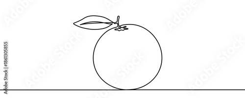 orange, citrous, fruit, food, healthy, tropical, vitamin, leaf, single line, drawing, art, icon, symbol, design, concept, minimal, black, editable, stroke, white background, isolated, vector, illustration