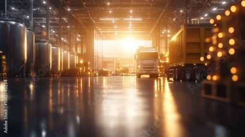 warehouse, distribution, logistic, transportation, truck, shipping, industrial, business, good, storage, supply, inventory, facility, cargo, equipment, activity, operation, environment, machinery, technology, modern, loading, unloading, scene, interior, illumination, sunset, reflective, floor, architecture, container, motion, movement, structure, efficiency, network, space, process, work, management, area, workflow, delivery, modernity, transport, setting, large, system