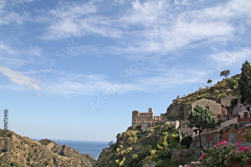 widok na gory, Savoca, Sycylia, Wlochy, niebo, wzgorza