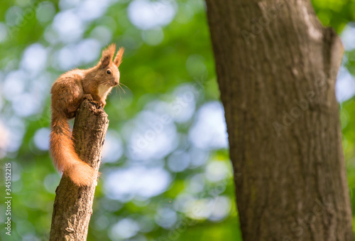 squirrel, tree, animal, rodent, wildlife, fur, mammal, cute, wild, garden, redhead, tail, forest, brown, bokeh, green, summer, springtime, small, branch, trunk, food, garden, nature, wildlife, ear, fur, depth of field, outside, sun, sunshine, agility, speed, europa, autumn, season, beauty