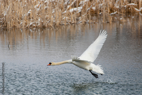 Wild bird mute swan male (Cygnus olor) swim in spring on pond, Czech Republic Europe wildlife