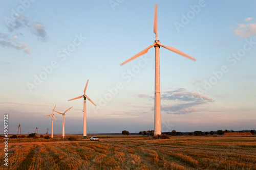 Wind power landscape at sunset.