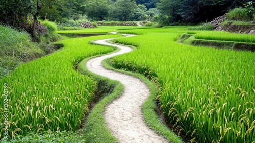 Winding Path Through Lush Green Rice Fields - Nature & serenity: Th.