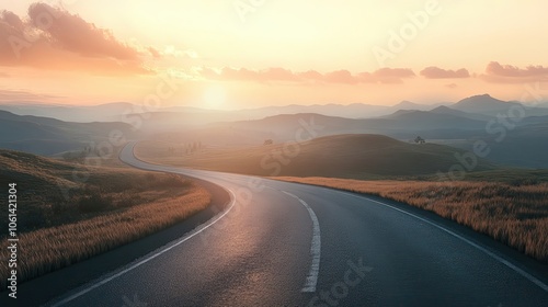 Winding Road Through Rolling Hills at Sunset