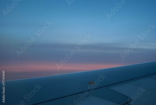 wing, aeroplane, window, air, cloud, flight, sky, transportation, travel, plane, sunset, aircraft, blue, high, transport, aviation, jet, background, horizon, sunlight, sunrise, view, aerial, fly, nature, cloudscape, atmosphere, vacation, up high, aerospace, sunshine, white, airliner, dim, ocean, bright, space, glasses, beautiful, scenic, trip, commercial, business, evening, vehicle, over, looking, people, beauty, earth