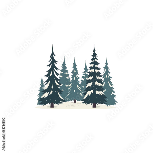 winter, snow, tree, forest, pine, fir, evergreen, nature, landscape, cold, season, christmas, holiday, festive, wood, wilderness, illustration, vector, graphic, scalable, design, icon, logotype, flat, minimal, simple, cartoon, scene, frosty, snowy, spruce, conifer, timberland, natural, environment, park, background, element, clip art