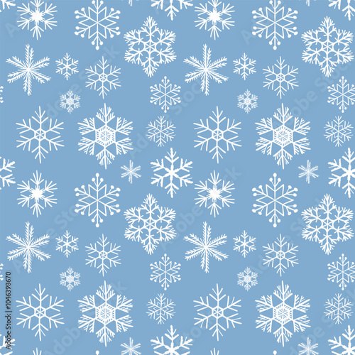 Winter seamless pattern with white snowflakes on blue background. Vector illustration for fabric, textile wallpaper, posters, gift wrapping paper. Christmas vector illustration