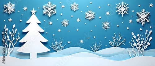 Winter Wonderland Christmas Scene with Snowflakes and Pine Tree - 2025