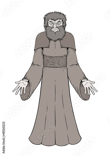 faith, catholic, religion, saint, religious, vector, illustration, holy, christianity, fun, priest, cartoon, design, old man, monastic, prayer, grim, creepy, cape, bogey, fiend, robe, cloak, form, weird, fearful, spirit, mediaeval, gothic, figure, surreal, shrill, unreal, mystic, omen, mystery