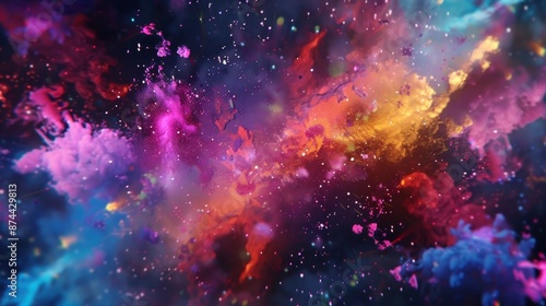 Witness a vibrant explosion of colorful nebula in the infinite realms of space, a majestic display of cosmic beauty