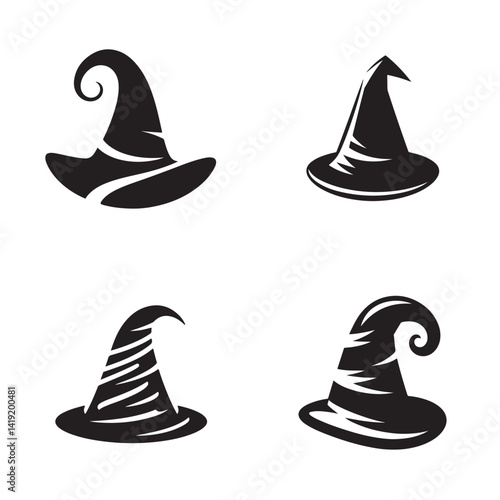 Wizard Hat Silhouette - Minimalist Black Vector Icon on White Background