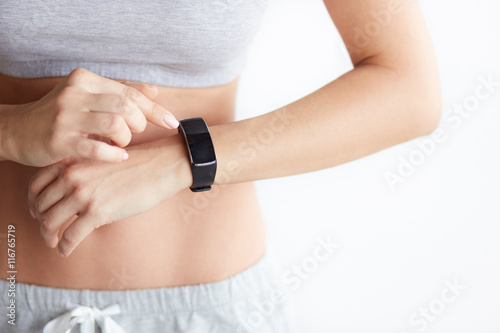 fit, fitness, tech, band, monitor, run, watch, tracking, step, count, health, sport, contraption, woman, nubes, counter, smart, training, physical exercise, runner, cardio, jogger, photo, rate, arm, people, female, technology, display, woman, checking, wearable, device, white, background, black, blank, screen, closeup, studio, indoor