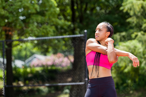 woman, adult, young, african american, black hair, braid, diversity, racked, pose, stretch, look, basketball, court, sport, game, fitness, athlete, shoe, health, outdoors, day, people, 2