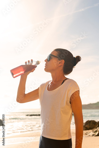 woman, drinking, bottle, hot, day, thirst, refreshment, athlete, adult, blue, bodycare, brunette, caucasian, copy space, dehydration, drink, exhausted, female, fit, health care, healthy, healthy lifestyle, heat, hydrate, lifestyle, outdoors, refresh, half face, summer, sunglasses, sunlight, temperature, thirsty, water, water bottle