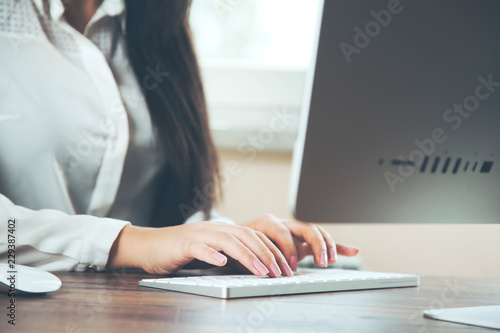 background, blank, business, computer, desktop, woman, hand, information, keyboard, laptop, message, notepad, office, table, work
