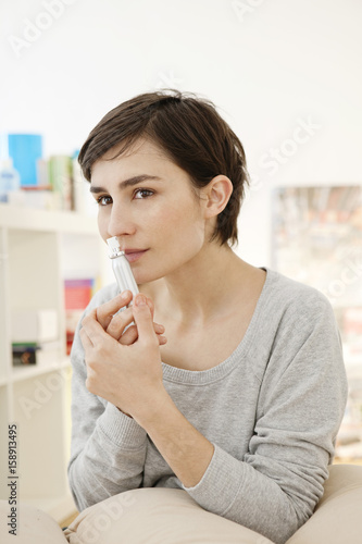 oil, smell, interior, human, person, adult, european, female, woman, flask, essence, essential oil, beauty care, beauty, perfume