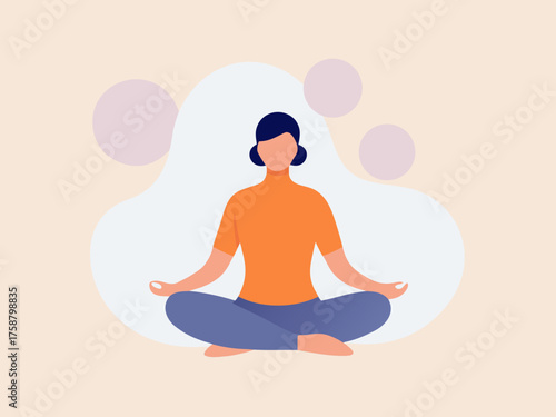 Woman meditating in lotus position for wellness and relaxation in a calm setting