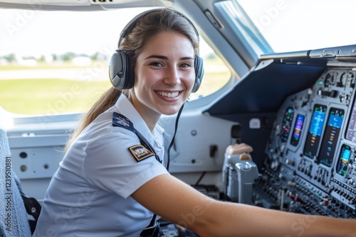 woman, person, female, flight, plane, aircraft, transportation, young, travel, aeroplane, caucasian, happy, pilot, aviation, journey, beautiful, lifestyle, flying, cockpit, sitting, private, cabin, crew, business, attractive, interior, brunette, job, inside, instrument, portrait, earphones, window, smile, jet, airline, adult, modern, technology, occupation, air, skill, driver, cheerful, craft, small, passenger, professional